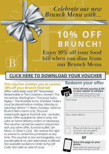 - This voucher entitles you to receive 10% off your Brunch food bill