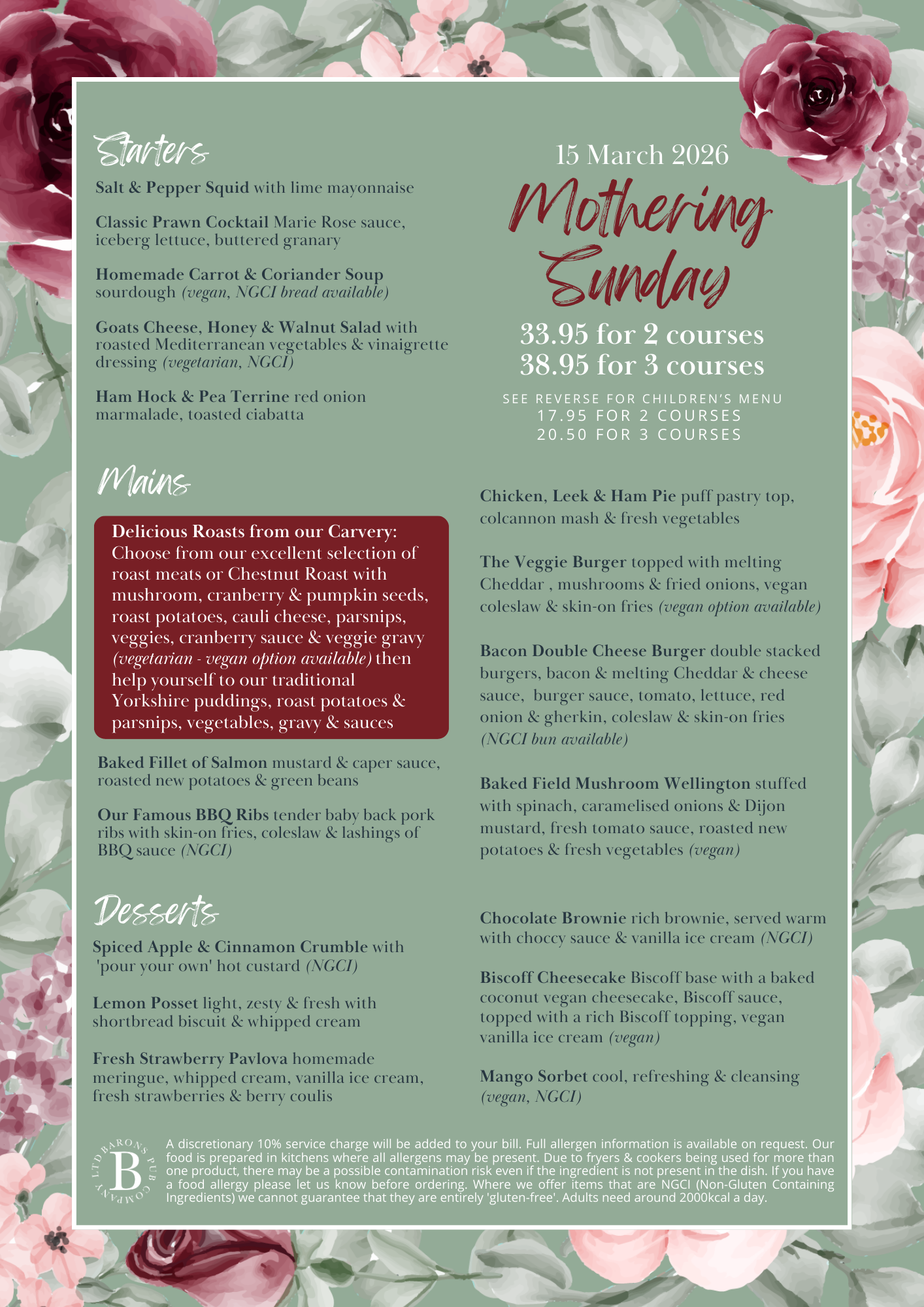 All guests on Sunday 15 March 2026 will be offered the Set Menu only.Â