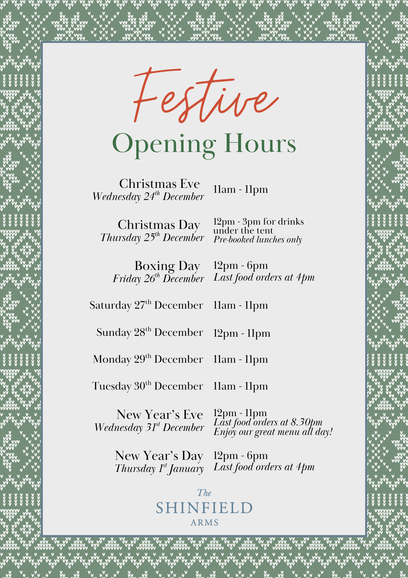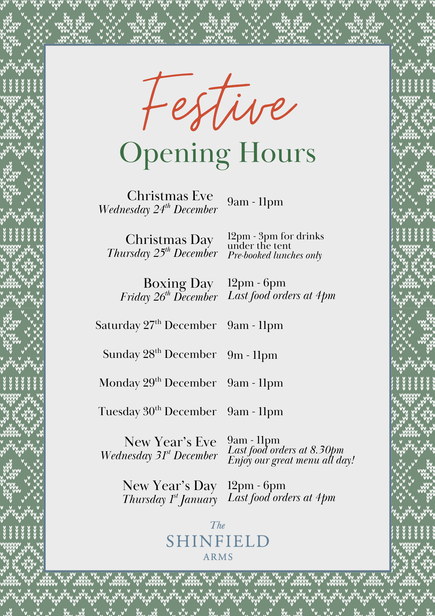 Call us directly on 0118 988 3116 for larger groups, to book your Festive Buffet Menu, or to make your Christmas Day reservation.