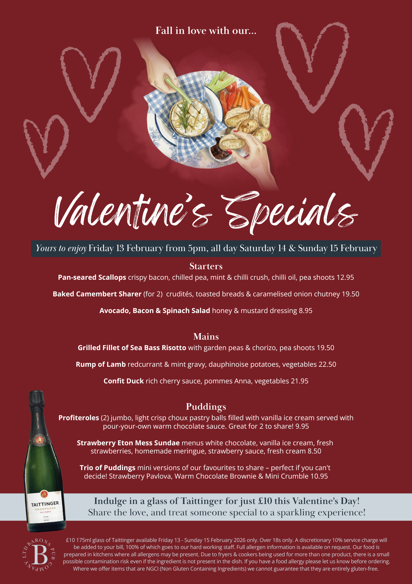 This Valentine’s Weekend, fall in love with our Valentine’s Specials, yours to enjoy from Friday 13 February from 5pm, all day Saturday 14 & Sunday 15 February!